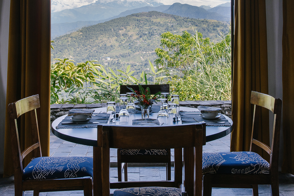 The main lodge features a spacious sitting room with comfortable sofas and armchairs, a cosy fireplace, and large windows that offer breathtaking views of the mountains. This leads out onto a glorious, sun-filled terrace - the ideal place for breakfast as you wait for the mountains to appear; or to sit and sip a sundowner. There is also a library stocked with books on the local culture and wildlife, as well as a boutique selling handmade Nepali crafts and souvenirs. The dining room is light and airy and serves excellent local delicacies. To cap it all, there is a very pretty pool, set in a peaceful garden, again with stunning mountain views.